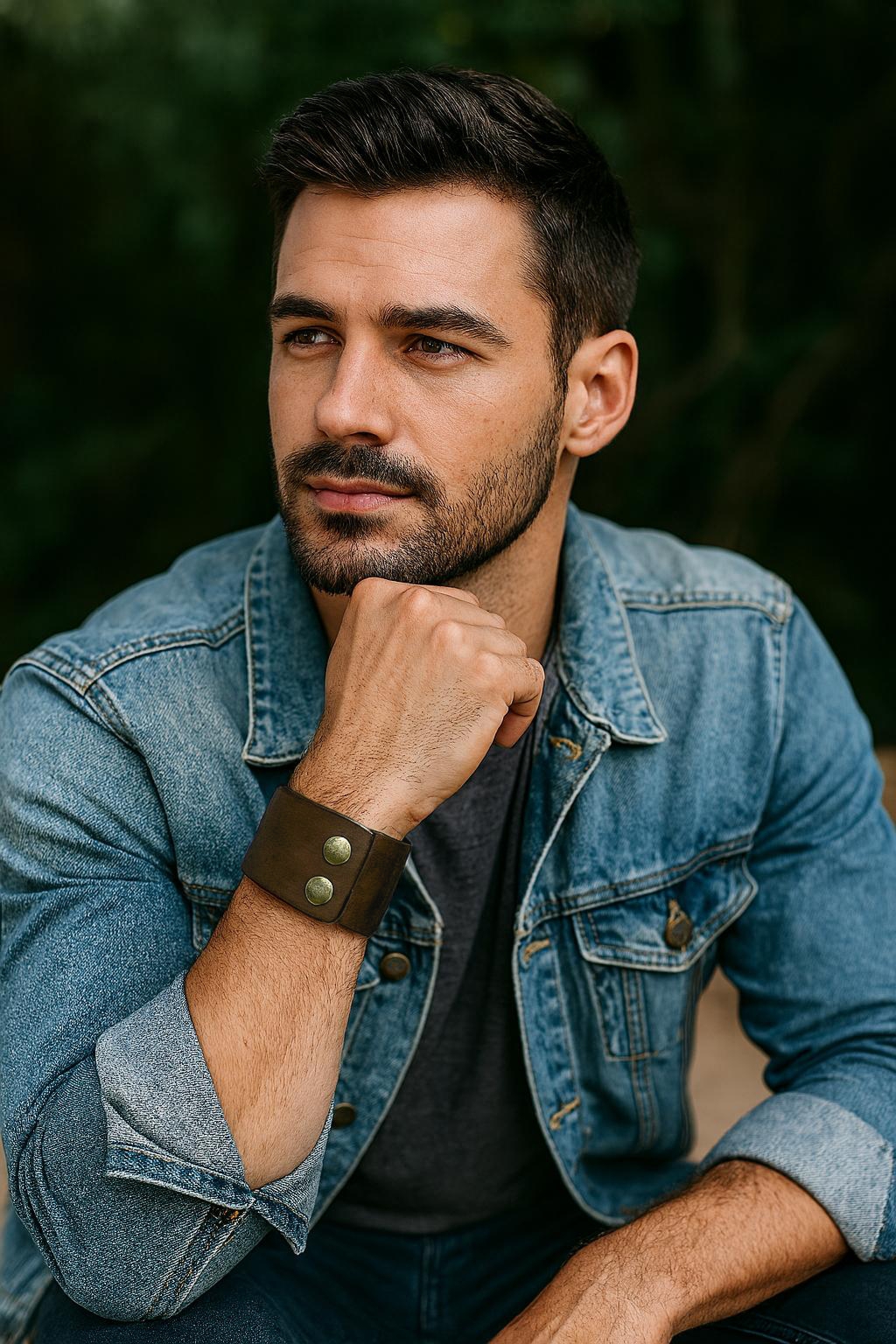 Περικάρπιο φαρδύ 5,4cm από αυθεντικό δέρμα και κούμπωμα με τρουκς.