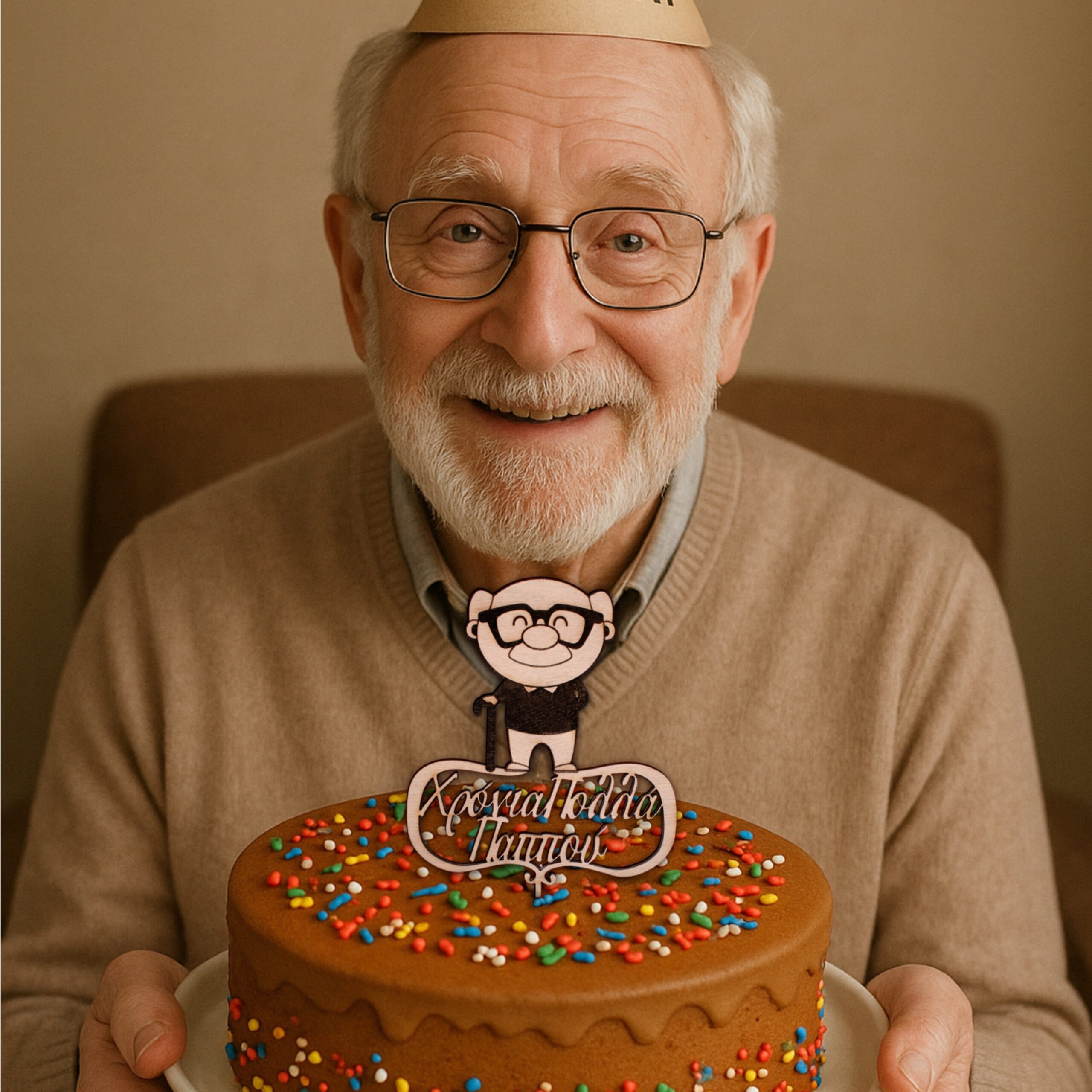 Ένα παιχνιδιάρικο ξύλινο τόπερ που αποτυπώνει όλη τη ζεστασιά, τη σοφία και το χιούμορ του αγαπημένου παππού. Ιδανικό για γενέθλια, ονομαστική εορτή ή απλώς για να του δείξετε πόσο τον λατρεύετε (και πόσο του πάει το χαμόγελο στη φωτογραφία με την τούρτα!).