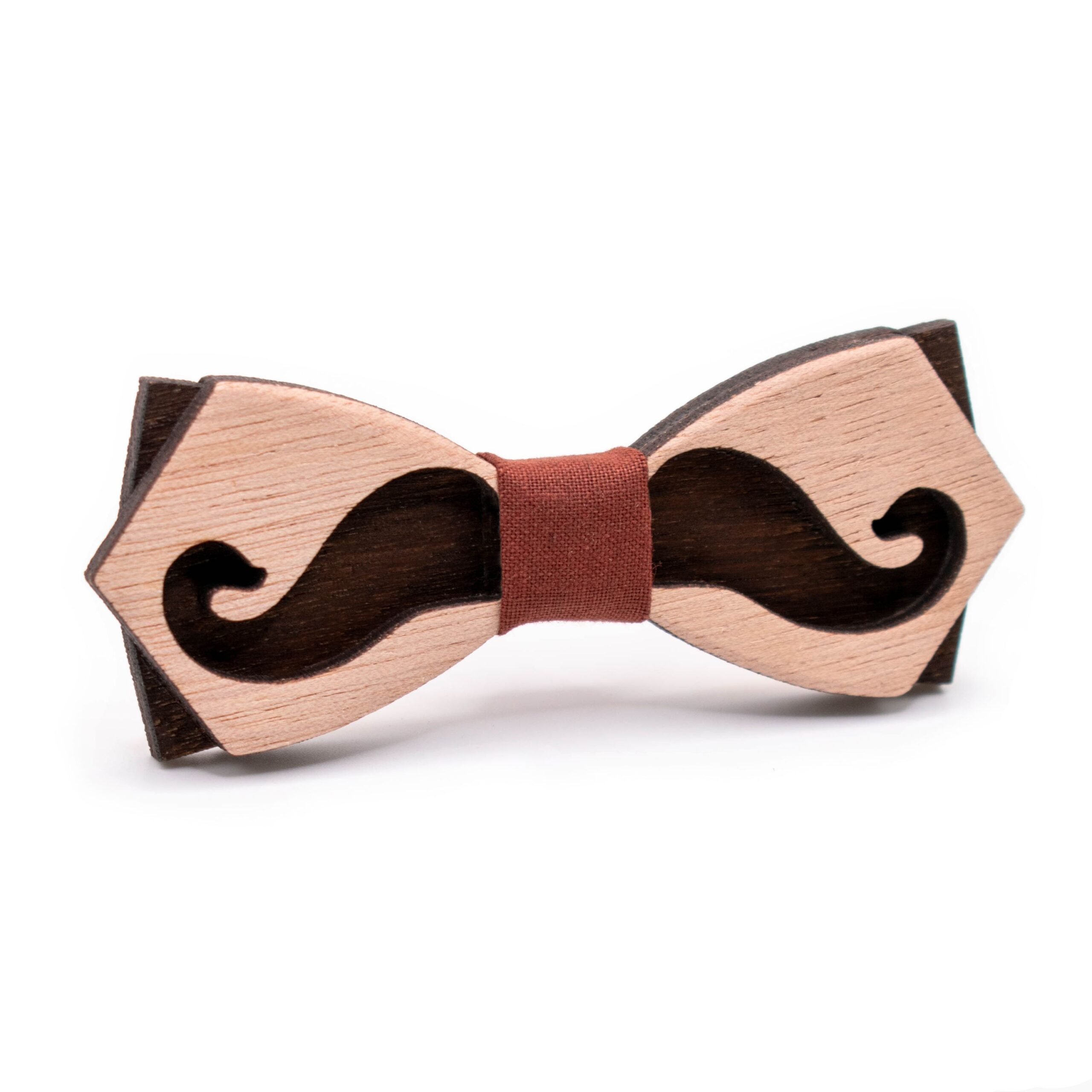 Κατασκευασμένο από ποιοτικό ξύλο σε δύο αποχρώσεις, διαθέτει ένα παιχνιδιάρικο, δίχρωμο σχέδιο μουστάκι που τραβάει τα βλέμματα. Είναι το ιδανικό αξεσουάρ για να προσθέσει μια νότα κομψότητας και χιούμορ σε κάθε εμφάνιση.