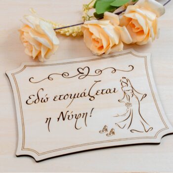 Έχουμε τη δυνατότητα να χαράξουμε οποιοδήποτε άλλο κείμενο επιθυμείτε, καθώς και να τη συνδυάσετε με την αντίστοιχη πινακίδα για τον Γαμπρό, ώστε να ολοκληρώσετε το σετ.