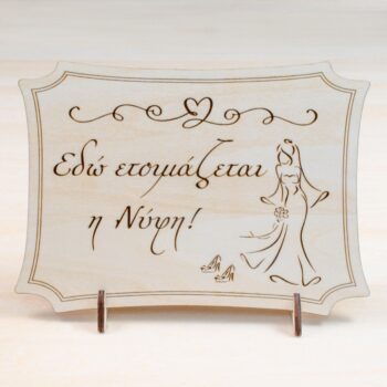 Πινακίδα Γάμου “Εδώ ετοιμάζεται η Νύφη” – 20×13 cm