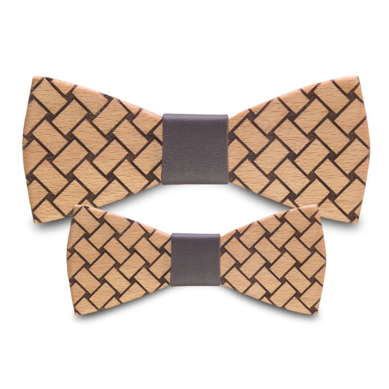 Ένα απίθανο σετ για τον μεγάλο και τον μικρό της οικογένειας. Συνδυασμένο σετ από ανδρικό και παιδικό παπιγιόν με σχέδιο “ψάθα” από φυσικό ξύλο οξιάς.