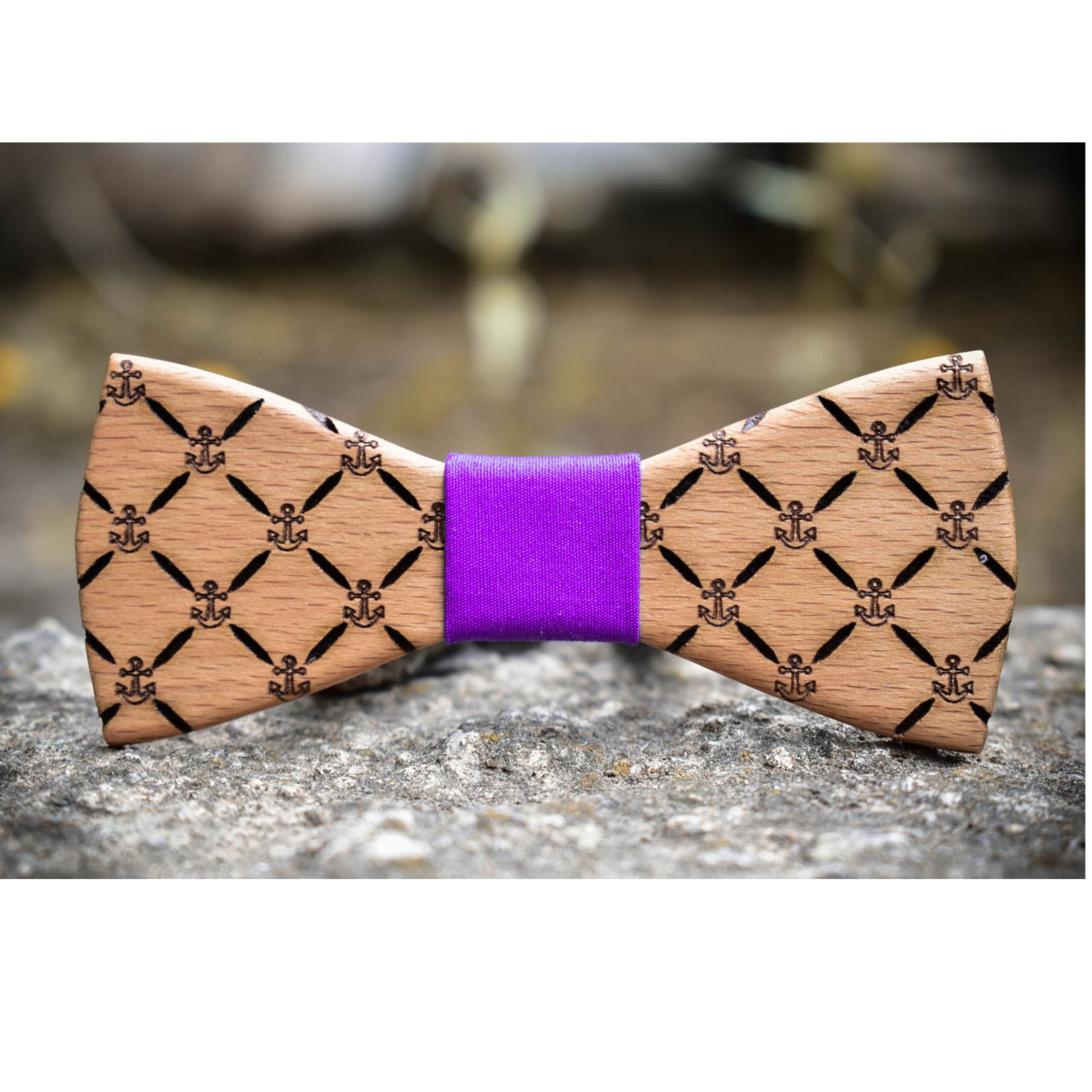Εδώ, ξύλινο παπιγιόν από φυσικό ξύλο οξιάς με ιδιαίτερη χάραξη γραμμές & άγκυρες.