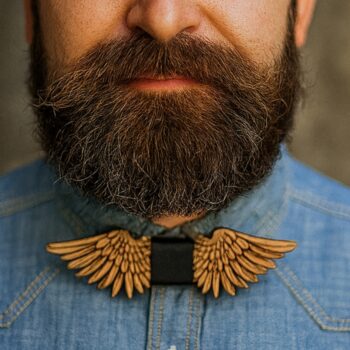 Εδώ, ξύλινο παπιγιόν από φυσικό ξύλο οξιάς με ιδιαίτερη χάραξη Φτερά Αετού.